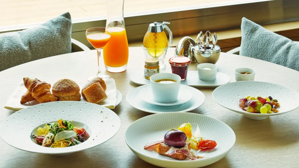 朝には、窓いっぱいに広がる光と海景とともに楽しむ朝食をご用意。